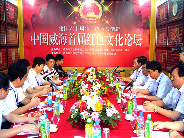 2009年秋,首届红色文化论坛在威海临港区(当时称“工业新区”)毛泽东像章博物馆举行,威海市部分专家学者、有关部门负责人、企业家代表齐聚一堂,围绕“红色文化的传承与创新”主题畅所欲言,共同追忆革命先辈艰苦卓越的丰功伟绩,感受红色文化,深入研究其历史和现实意义,探讨红色文化的传承价值与创新发展思路。