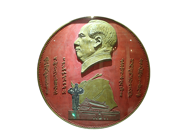 在博物馆二楼摇篮厅,我们的目光定格在一个硕大的铝制像章上,这枚像章在那些成千上万的小像章环绕和映衬下,更显无限伟岸。于国杰说,为了收藏这枚馆藏最大的像章,他曾六赴云南。