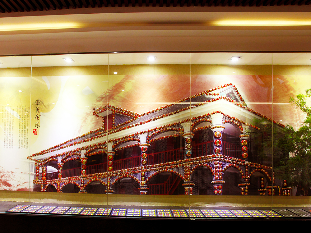 这是博物馆用像章拼的遵义会议看板。遵义会议纠正了长征中的左倾错误,正式确立了毛泽东的领导地位。