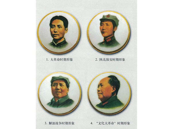 山东省毛泽东像章的形象风格,即“四枚基本形象风格”,这种风格是艺术上的“大处着墨”,亦可称作大写意风格,此种风格最关键的问题是要抓住所反映事物的实质,具有典型性。套章的风格如同绘画,千姿百态,毛泽东像章也是一样,各种不同的风格使得它丰富多彩,洋洋大观。